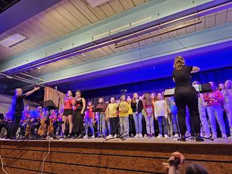 Siebzehn Schülerinnen und Schüler des Gymnasium Michelstadt beteiligten sich dieser Tage in der Partnerstadt Rumilly an dem unter dem Motto „Concert interchorales – Générations Alpha Boomer“ stehenden Konzert. Gemeinsam mit etwa siebzig französischen Schülern aus drei Schulchören und einem etwa dreißig Sänger zählenden Erwachsenenchor leistete die GyMi-Bigband unter der Leitung von Oberstudienrat Markus Terk einen Beitrag zum abwechslungsreichen Programm.