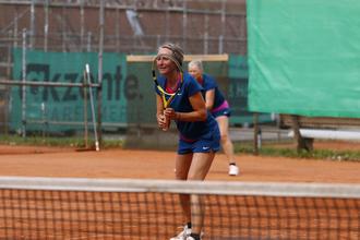 Mit einer starken 4:2-Führung aus den Einzeln ging die Mannschaft anschließend in die Doppelbegegnungen gegen Herrenberg. Die Paarungen Peczely/Muzik sowie Bechtold/Vetter gewannen jeweils klar. Im dritten Doppel kam Ersatzspielerin S. Wamsser für die verletzte B. Hanst zum Einsatz. Riess/Wamsser kämpften stark, dieses Spiel ging jedoch nach einem sehr engen Verlauf im Match-Tiebreak verloren. Am Ende konnte das Erbacher Team auf einen gelungenen 6:3 Tagessieg blicken.