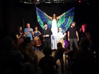 Das Mitmach-Programm stieß auf große Resonanz. So präsentierten sich bis zu zehn weitere spontane und mutige Newcomer:innen aus den Bereichen Artistik, Trommel-Musik, Comedy, Zauberei und Lyrik. Zum Abschluss waren die zahlreichen Gäste eingeladen eine fesselnde Feuerperformance im sommerlichen Dämmerlicht auf dem Außen-Gelände der AWO zu genießen.