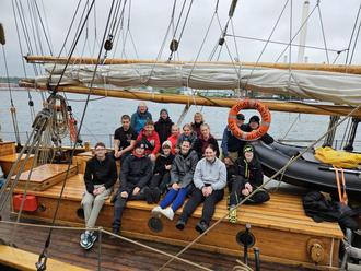 Ergänzt wurde das praktische Training durch von den Jugendlichen vorbereitete Kurzvorträge, z.B. zur Schwimmfähigkeit von Schiffen, Windkursen oder alten Seefahrermythen. Die Tage an Bord forderten alle heraus – ob beim Segelsetzen oder Finden eines ruhigen Moments auf dem nur 28 Meter langen Schiff. Doch genau diese Erfahrungen schweißten die Gruppe schnell zusammen.