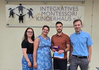 Das Integrative Montessori Kinderhaus e.V. gratuliert seinem ehemaligen Azubi Dennis herzlich zur erfolgreich bestandenen Prüfung zum staatlich anerkannten Erzieher. Wir sind sehr stolz auf dich und freuen uns mit dir über diesen tollen Erfolg. Deine Arbeit und dein Einsatz haben sich wirklich gelohnt. Du bist eine Bereicherung für uns alle. Das Experimentieren und Forschen ist dein Steckenpferd und du bist auch ein beliebter Torschütze. Es ist wunderbar zu sehen, wie viel Freude und Vielfalt du in den Umgang und das Lernen mit den Kindern steckst. Wir schätzen deine Offenheit gegenüber allen Kulturen und deine positive Art. Deine Begeisterung für diesen Beruf bedeutet uns viel und wir freuen uns auf den weiteren gemeinsamen Weg mit dir. Die Montessoripädagogik lebt von Erzieher*innen wie dir und wir sind glücklich darüber, dass wir dich direkt nach deiner Prüfung übernehmen konnten. Wir wünschen dir weiterhin viel Freude und eine schöne Zeit im Kinderhaus.