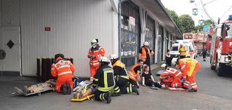 gemeinsame Rettungsübung zum Erbacher Wiesenmarkt von DRK Ortsverein Erbach und FFW Erbach