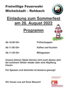 Die Freiwillige Feuerwehr Rehbach lädt zum diesjährigen Sommerfest am 28. August ein. Das Fest beginnt um 10.00 Uhr und findet am Dorfgemeinschaftshaus in Rehbach statt. Für das leibliche Wohl ist bestens gesorgt. Für die kleinen Gäste steht eine Hüpfburg bereit. Die Freiwillige Feuerwehr Rehbach freut sich auf Ihren Besuch!