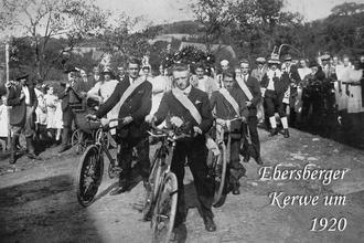 Im Erbacher Stadtteil Ebersberg laufen die Vorbereitungen zur Kerwe. Dass dieses Fest bereits vor über 100 Jahren gefeiert wurde, zeigt ein historisches Foto aus der Dorfchronik. Um 1920, wenige Jahre nach dem Ersten Weltkrieg, entstand das beigefügte Bild auf dem Vorplatz an der alten Schule. Angeführt von Mitgliedern des einstigen Radfahrervereins zog eine illustre Gesellschaft durch das kleine Dorf. Darunter Schützen und Jäger, Burschen in Frauenkleidern, Ehrenjungfrauen, allerlei verkleidete Gestalten und der „Kerweparrer“. Die Gruppe führte auch den Kerwekranz mit, der in damaligen Zeiten in einer der örtlichen Gastwirtschaften seinen Platz fand. Wie aus der Chronik zu entnehmen ist, hatte das Dorf drei Wirtschaften, davon eine mit großem Tanzsaal in einem Nebengebäude. Mit den politischen Veränderungen Mitte der 20er Jahre fand auch das dörfliche Fest ein Ende. Erst 1976 gab es die Neuauflage der Kerwe in einem kleinen Zelt vor dem Dorfbrunnen. Ein Ebersberger Junggesellenstammtisch kümmerte sich um die Organisation der Kerwe. Kerweredd, Kerweumzug und ein Kleinfeld-Fußballturnier gehörten zu den damaligen Höhepunkten. Alljährlich gab es besondere Attraktionen und bei einem Kerweumzug mit über 25 Zugnummern, der im Schönnemer Unterdorf aufgestellt wurde und mit Polizeibegleitung über die Bundesstraße nach Ebersberg verlief, konnte Anfang der 80er Jahre die Verbundenheit mit dem Nachbarstadtteil gefestigt werden. Wegen der Enge am Dorfbrunnen musste das Fest in den Folgejahren vorübergehend zum Feuerwehrhaus verlegt werden. Im Rahmen der Dorferneuerung (2000-2010) fand die Kerwe dann ihren heutigen Platz auf der Freizeitanlage unterhalb vom Schwimmbadgelände. Dort stehen neben einer Bewirtungshütte auch sanitäre Anlagen im Funktionsgebäude zur Verfügung. Nach einem Generationenwechsel im Jahr 2016 veranstaltet die heutige Dorfjugend mit Unterstützung der Ebersberger Feuerwehr das zweitägige Zeltfest. In diesem Jahr haben sich die „Kerwemacher“ wieder ein besonderes Programm einfallen lassen. Los geht es am Sa., 19. August um 19 Uhr mit dem sommerlichen Grillabend. Ab 21 Uhr wird „DJ Schimmi“ mit Hits aus vier Jahrzehnten einheizen. Davor können sich Flip-Cup-Fans bei einem kleinen Turnier austoben und gegen 21:30 Uhr öffnet die Bar. Sonntagnachmittag wird als Höhepunkt um 15 Uhr die „Kerweredd“ zelebriert. Auch einige Gesangseinlagen der „Reubolds“ und Spiele für Groß und Klein stehen auf dem Programm. Die Verbrennung der „Kerwebobbe“ leitet dann gegen 17 Uhr zum feucht-fröhlichen Kerweausgang über. Für das leibliche Wohl wird mit allerlei Köstlichkeiten vom Schwenkgrill gesorgt. Bleibt nur zu hoffen, dass das Wetter mitspielt und dieses Fest wieder zu einem tollen Erlebnis für die Ebersberger Dorfgemeinschaft und ihre Gäste wird./lw.