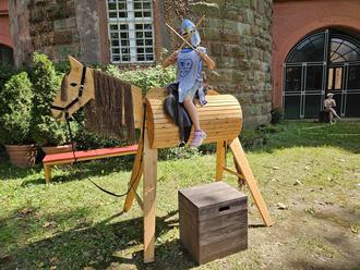 Das Erbacher Schloss ist ohnehin immer einen Besuch wert. Wenn aber das jährliche kleine Schlosshoffest des Kiwanis Club Erbach/Odenwald stattfindet, finden sich hier ganz besonders viele Attraktionen für Jung und Alt: Im angenehm schattigen Garten waren die altertümlichen Spiele wie Sackhüpfen, Topfschlagen, Eierlauf und Dreibeinlauf aufgebaut. Zudem durften sich die Kinder in mittelalterlichen Prinzessinnen- und Ritterkostümen kleiden und auf dem Holzpferd „Rosinante“ reiten.