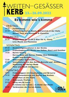 Endlich steht in Weiten–Gesäß wieder ein traditionelles Kerb-Wochenende an. Der Erlös des gesamten Kerbwochenendes kommt im vollen Umfang dem Förderverein der Evangelischen Grundschule Weiten-Gesäß zugute.
