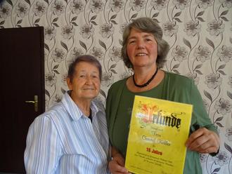 Karin Schaefer (links) überreichte an Christel Keller die Urkunde für 15 Jahre Mitgliedschaft im Gesangverein Rehbach 1948.