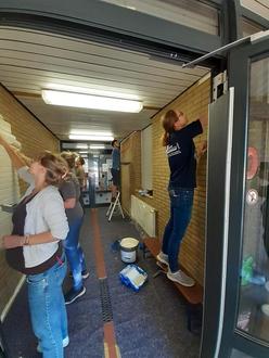 Während die Kita-Kinder von den pädagogischen Fachkräften betreut wurden, rückten die Eltern dem Unkraut im Außengelände mit Haken und den Gartenmöbeln mit Schleifgeräten zu Leibe. Mit viel guter Laune wurden mehrere Sitzgarnituren sowie eine Bank abgeschliffen und mit neuer Farbe versehen. Außerdem strichen die Eltern den Vorflur der Kita in einem hellen, freundlichen Farbton, sodass der Flur nun von den Erzieherinnen weiter gestaltet werden kann.