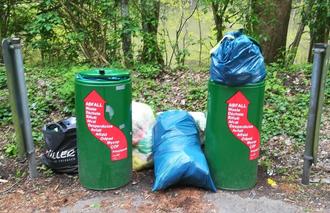 Am Straßenrand und in der Böschung vom großen See zwischen Rehbach und Steinbach liegt sehr viel Müll.
