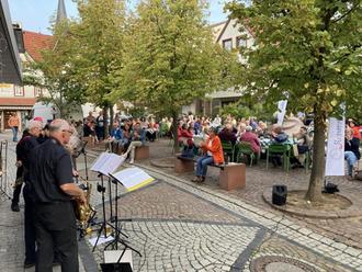 Bei angenehmen Temperaturen ließen sich die Besucherinnen und Besucher Zwiebelkuchen und Federweißer schmecken. Für die musikalische Unterhaltung sorgte das "Salon Orchestra Odenwald", das mit schwungvollen Melodien der 20er und 30er Jahre für gute Stimmung sorgte.