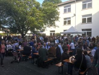 Schülerinnen, Schüler, Lehrkräfte, Ehemalige und viele Gäste fanden sich bei herrlichem Wetter auf dem Schulgelände des Gymnasiums Michelstadt ein und genossen das breite Angebot an Speisen wie Kartoffelpuffer, Scones, internationale Spezialitäten, Waffeln, Schokofrüchte, Süßigkeiten und vieles mehr sowie Getränke von Cocktails bis Kakao.