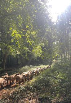 Unterwegs erzählt Bernd Keller Interessantes über die Bedeutung der Schafhaltung für Natur und Landschaft, über den Alltag von Schäferinnen und Schäfern und über den Einsatz der fleißigen Hütehunde.