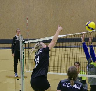 Erbachs Damen brauchten ein paar Ballwechsel, um ins Spiel zu kommen, aber dann setzten sie ihr bewährtes Erfolgsrezept konsequent um: mit den eigenen Aufschlägen Druck machen, sicher in der eigenen Annahme stehen, daraus ein variables Angriffsspiel aufbauen, das für den Gegner nur schwer auszurechnen ist, und dann über alle Positionen die Punkte machen. Erbach war wie in den letzten Begegnungen erneute auf allen Positionen stark besetzt. Libera Carolin Schnell stand in der Abwehr wie ein Fels in der Brandung, Lea Schubert wie gewohnt nicht nur sicher und kreativ im Zuspiel, sondern auch immer wieder gut für überraschende Lobs auf die kurze gegnerische sechs. Die Erbacher Angriffe waren für Dieburg nur schwer auszurechnen, die Attacken kamen über alle Positionen. Stark auch der Erbacher Mittelblock mit Stefanie Reuß und Delia-Jacqueline Eckert, die immer wieder mal über Außen kam und so den gegnerischen Block überraschte, und Diagonalangreiferin Jasmin Haas, die aus dem Rückraum viele Punkte beisteuern konnte. Der VC dominierte die Begegnung, erlaubte sich lediglich in allen drei Sätzen am Ende einige unnötige Fehler, fand aber immer wieder zurück in seine Linie, ohne einen Satz leichtsinnig zu gefährden.