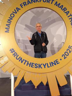 Horst Kowarsch nahm zum achten Mal am 42. Frankfurt-Marathon teil und benötigte für die Strecke von 42,195 Kilometern 4 Stunden und 23 Sekunden.