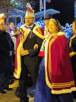 Fast pünktlich um 18:11 Uhr wurden am Erbacher Bahnhof die Erbacher Prinzenpaare von den Mitgliedern es CV-ULK sowie von vielen Gästen abgeholt. Empfangen wurden: Seine Tollität Prinz Vitali I., tanzender Auto-Serviceberater aus dem Hause Seifert, der putzlappenschwingend immer eine proWIN-Win Situation erschafft und ihre Lieblichkeit Prinzessin Michelle I., Beherrscherin des Marketing-Dialoges und tanzende Pferdeflüsterin aus dem Hause Heckmann sowie des Kinderprinzenpaares Max I., schwimmender Prinz vom Mühlberg unserer ehrwürdigen Stadt. Einziger Sprössling aus dem närrischen Hause Ripper sowie Lea I., tanzende Prinzessin aus dem Höhendorf der verbotenen Stadt, jüngste Tochter aus der Fastnachtsfamilie Keßler-Fedra.