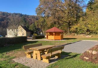 „Was lange währt, wird endlich gut“, so die Aussage von Ortsvorsteher Erich Petersik zu einem neuen Dorfprojekt, das kommenden Samstag (16.11. / um 14:00 Uhr) an die Bevölkerung des Erbacher Stadtteils Ebersberg feierlich übergeben wird. Schon seit längerer Zeit gab es Ideen zur Umgestaltung und Nutzung eines städtischen Grundstücks gegenüber der „Alten Schule“. Bürgerschaftliches Engagement und der Ortsbeirat waren gefordert, kommunale Gremien und Institutionen unterstützten mit Beratung und Fördermitteln aus öffentlichen Töpfen. So entstand auf der Wiese ein attraktiver Dorftreff mit Sitzgruppe, Boulebahn und Pavillon. Dieser Ruhepunkt soll die dörfliche Gemeinschaft fördern, Treffpunkt für Spiel und Unterhaltung sein, aber auch Wanderfreunden und Radfahrern einen Schutz bieten. Planung, Organisation und Bauausführung lagen in den Händen von Hans-Jürgen Döpke und Jürgen Weinrauch (beide aus der Bürgerschaft), Erich Petersik (Ortsvorsteher) sowie Andreas Olt (stellv. Ortsvorsteher). Zahlreiche Bürgerinnen und Bürger standen als Unterstützer der „Bauleitung“ tatkräftig zur Seite. So entstand ein tolles Projekt, mit dem sich der Stadtteil Ebersberg sehen lassen kann. Aber auch auswärtige Gäste werden Gefallen an der Anlage finden, denn in unmittelbarer Nähe führen der Hessenradweg und der Mümlingtal- bzw. Dreiländerradweg vorbei. Auch kann der neue Treff Ausgangspunkt für Wanderungen zum „Ebersberger Felsenmeer“ oder zu anderen Höhenzügen des Odenwaldes sein. Alle Ebersberger Bürgerinnen und Bürger sind zur Eröffnung der Anlage und zum Umtrunk herzlich eingeladen. Ein großes Dankeschön gebührt allen Dorfbewohnern, die in vielen, vielen Stunden zum Gelingen des Projekts beigetragen haben./lw