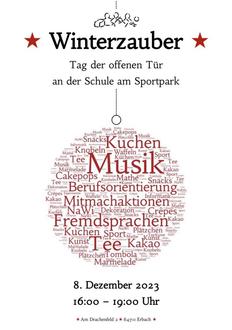 Die Schule am Sportpark öffnet am Freitag, den 08.12.2023, von 16:00 - 19:00 Uhr für Besucher ihre Türen!