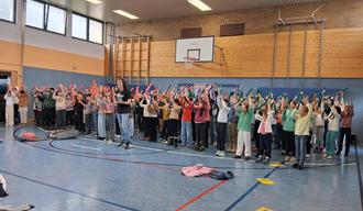 Als Highlight der Woche präsentierten die Schülerinnen und Schüler aus Jahrgang 3 und 4 ihre erarbeiteten Stücke in einem Konzert vor der gesamten Schulgemeinde. Stolz trugen sie ihre Lieder nacheinander vor und begleiteten abschließend noch ein gemeinsames Lied mit Boomwhacker-Akkorden.