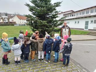 Der Kindergarten am Campus hat den Weihnachtsbaum an der Stockheimer Turnhalle mit selbstgebasteltem Baumschmuck geschmückt. Ebenso hat der Naturkindergarten den auch für die Bürgerinnen und Bürger und für die Kinder und Eltern in der Alsfelder Straße und Umgebung aufgestellten Weihnachtsbaum im Gelände des Naturkindergartens mit Selbstgebasteltem versehen. Mit großer Freude haben die Kinder ihre gebastelten Figuren und Sterne an die jeweiligen Bäume gehängt. Ortsvorsteher Walther bedankte sich ganz herzlich bei den Mitarbeiter/innen für das gute Gelingen und den begleitenden Erzieherinnen für ihr Engagement für die Bürgerinnen und Bürger Stockheim´s.