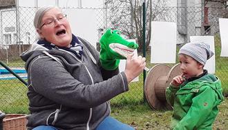 Erbach. Die Kinder des Naturkindergartens Nimmersatt im Erbacher Stadtteil Erlenbach hatten am 28. November die Zahnputzfee – wie die Mitarbeiterin des Arbeitskreises Jugendzahnpflege Darmstadt-Dieburg-Odenwaldkreis liebevoll genannt wird – zu Besuch. Sie hatte nicht nur viele hilfreiche Utensilien im Gepäck, um den Kindern den richtigen Umgang mit der Zahnbürste beizubringen, sondern auch ihren Assistenten, das Krokodil Rudi.