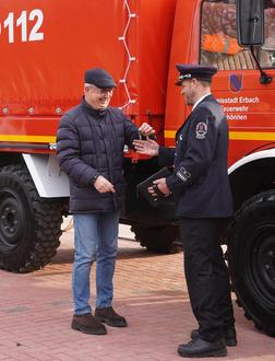 Bürgermeister Dr. Traub und Wehrführer Grenz bei der Schlüsselübergabe