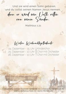 Folgende Gottesdienste können sie über den Link: https://www.evcb-michelstadt.de mithören: