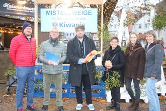 Am ersten Adventswochenende nutzte der Kiwanis Club Erbach/Odenwald den beliebten Mistelzweigverkauf in Erbach für zwei Geldübergaben in Form von einem Schnellhefter, einer Zahnbürste und einem Igel.