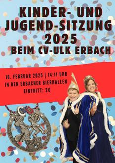 Bitte schon jetzt vormerken: Kinder- und Jugendsitzung des CV Ulk Erbach, am Sonntag 16. Februar, um 14:11 Uhr in den Erbacher Bierhallen.