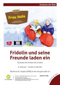 Fridolin und seine Freunde laden ein zur Vorlesestunde. Für Kindergartenkinder und Kinder bis 8 Jahre gibt es schöne Geschichten und das Kamishibai-Vorlesetheater.