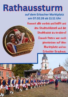 Mit der Erstürmung des Alten Rathauses und der Übernahme des Stadtschlüssels beginnt die heiße Phase der Erbacher Fastnacht. In der folgenden Woche sei bereits jetzt auf den Kappenabend der CV Ulk Hexen, im Erbacher Brauhaus, am Donnerstag, 12.02.2026, ab 19:11 Uhr (Weiberfastnacht), hingewiesen.