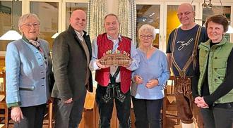 Bürgermeister Andreas Jakob und Sylvia Preisinger, Ansprechpartnerin für soziale Angelegenheiten im Ruhstorfer Rathaus zusammen mit den Marktratskollegen Roswitha Nöbauer und Christian Lindinger gratulierten Peter Vogelreuter zum 80. Geburtstag und bedankten sich mit einem Geschenk für sein jahrelanges ehrenamtliches Engagement.