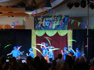 Schnell war der heiß ersehnte Show-Tag gekommen. Nach dem ersten Lampenfieber und einem tollen Start durch den Schulchor konnten die Schüler*innen ihren Auftritt im Rampenlicht genießen und tosenden Applaus entgegennehmen. Die strahlenden Gesichter waren der krönende Abschluss einer gelungenen Zirkuswoche.