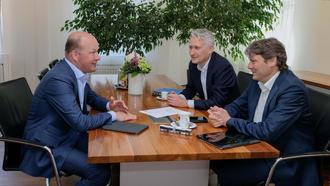 (v. l. n. r.) Landrat Martin Sailer, Hansjörg Durz, MdB, und der Stellvertreter des Landrats Dr. Michael Higl freuen sich darüber, dass die Bahnstrecke Ulm-Augsburg in das Sanierungsprogramm von Bund und DB aufgenommen wurde.