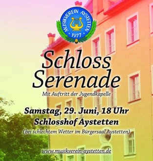 Der Musikverein Aystetten lädt Sie alle sehr herzlich zu seiner Schloss-Serenade am 29.6. um 18 Uhr im Schlosshof Aystetten ein.