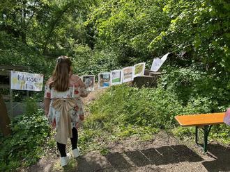 An den verschiedenen Aktionstagen vorher wurde dieser dafür vorbereitet: Wege freigelegt und befestigt, die Baumschilder der Kinder erneuert, das grüne Klassenzimmer mit Baumstämmen zum Sitzen versehen, das Ufer des Bächleins befestigt u.v.m.