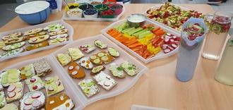 Vom 15. bis zum 21. Juni fand in der Klasse 3a eine Projektwoche statt zum Thema „Alltagskompetenzen - So halte ich meinen Körper fit“. Die Kinder lernten an diesen fünf Tagen, wie sich langfristig ein gesunder Lebensstil fördern lässt. An den beiden ersten Tagen vermittelte Frau Mahl den Schüler/-innen wichtiges Wissen über Lebensmittel. Hier durften die Kinder auch verschiedene kleine Snacks zubereiten - unterstützt durch eifrige Helfer, wie z.B. einige Schülereltern.