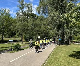Am 14. Juli 2025 war für die beiden dritten Klassen ein besonderer Schultag - sie durften ihre eigenen Fahrräder mit in die Schule bringen. Aus dem roten Platz wurde in Windeseile ein kleiner Verkehrsübungsplatz. Dann konnte es losgehen: Die Kinder fuhren nacheinander ihre Runden und mussten dabei kleine Hindernisse bewältigen und verschiedene Aufgaben ausführen. Das machte einerseits Spaß, es ging dabei aber auch um Fahrsicherheit und Geschick. Jetzt sind jedenfalls alle Schüler bestens auf den Fahrradführerschein in der vierten Klasse vorbereitet!