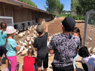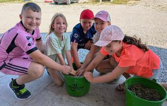 Im Rahmen der Alltagskompetenzwoche besuchten die Klassen 3a und 3b am 30. Juni 2025 den Biobauernhof am Hasenberg. Die Kinder wurden aktiv in die Arbeiten am Hof integriert und erfuhren dabei, wie Landwirtschaft funktioniert und unsere Lebensmittel erzeugt werden. Neben Hühner streicheln und füttern war das Highlight für alle Kinder das Sortieren der Eier an der Eiersortiermaschine. Und ganz nebenbei wurden spielerisch viele Fragen beantwortet, z. B.: Was fressen unsere Hühner? Wie sieht der Stall aus und wie fühlt sich ein Huhn an? Was braucht ein Huhn, damit es seinem arttypischen Verhalten nachgehen kann? Alle Kinder hatten viel Spaß und durften zur Erinnerung ein Eier-Schatzkästchen mit nach Hause nehmen.