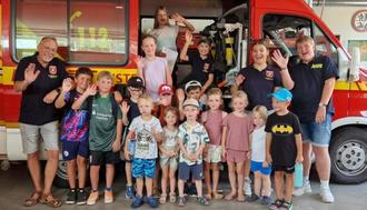 Krönender Abschluss des Ferienprogramms war der Besuch der Kinderfeuerwehr des Feuerwehrvereins Aystetten. Der Organisator Rene Crantz hob kurzfristig die Altersgrenze für Teilnehmer auf, so dass 15 Kinder dem Angebot folgen konnten. Einer „Schnitzeljagd“ durchs Dorf folgte eine verdiente Eis-Pause, Feuerwehrquiz und dann das, was sich jedes wünscht: eine Fahrt mit dem Feuerwehrauto!! Müde und begeistert konnten die Eltern ihre Kids, die sich auch noch ein Geschenk aussuchen durften, im Feuerwehrhaus abholen.
