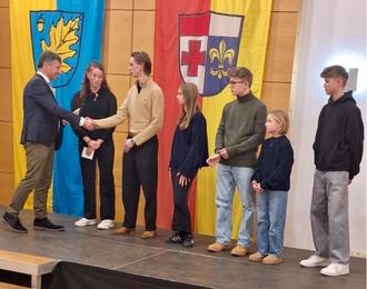 Wie jedes Jahr stand auch diesmal die Ehrung einiger Sportler auf dem Programm. Bereits zum 3. Mal durfte der 1. Bgm. der 1. Herrenmannschaft des SV Cosmos zum Aufstieg in die Landesliga gratulieren. Außerdem wurden Carlotta und Maximilian Föhn, Stockert Angela, Kunert Mona und Moritz, Quatember Elias und Jonathan Seefried für ihre sportlichen Leistungen im Bereich der Leichtathletik geehrt.