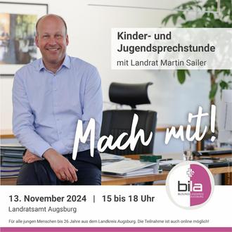 Nach der Anmeldung bekommst Du alle Informationen zur Anreise und zum Ablauf der Sprechstunde. Die Sprechstunde findet im Büro von Landrat Martin Sailer im Landratsamt Augsburg statt. Die Teilnahme ist auch online möglich.