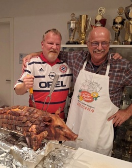 Im Anschluss an die JHV fand das traditionelle Sommerfest statt - natürlich mit einem Spanferkel. Wie immer schmeckte es den Mitgliedern und Gästen, dazu gab es allerlei Getränke von Apfelschorle bis Wein. Obwohl es später ziemlich kühl wurde, hielten es einige Gäste bis spät nach Mitternacht aus. Wir möchten uns ganz herzlich beim SV Cosmos Aystetten, den Helfern, sowie Petra, „Jimmy“ und vielen anderen für die Spenden bedanken! Danke für Euren Besuch – schee wars!