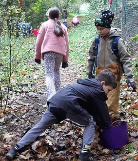 Am 23.10.24 führte die neu gebildete Arbeitsgemeinschaft Aufräumarbeiten im Schulwald durch. Die freiwillige AG besteht aus 22 Kindern aus den 2., 3. und 4. Klassen. Sie wird von den beiden Lehrerinnen Frau Zauner und Frau Huber geleitet. Die neu zusammengesetzte Gruppe trug einen Teil dazu bei, den Schulwald mit viel Tatkraft und Freude „auf Vordermann“ zu bringen: Mit Handschuhen, Rechen und Harken ausgerüstet wurde fleißig Laub von den Wegen gerecht, Sträucher zurückgeschnitten, Unkraut gejätet und auch das ein oder andere achtlos hinterlassene Stück Müll eingesammelt und entsorgt.