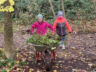 Am Samstag, 09.11.24 fand der Elternaktionstag im Schulwald, organisiert vom Elternbeirat unter der Leitung von Tanja Birnmann, statt. Es wurde geschnitten, gejätet, Hackschnitzel verteilt, Schubkarren gefahren, Müll entsorgt u.v.m. Nachdem Herr Jevtic schon im Vorfeld mit Baugeräten die größten Hindernisse aus dem Weg geräumt hatte, konnten an diesem Samstag alle anstehenden Arbeiten erledigt werden, so dass der Schulwald völlig verändert wirkte. Auch das neue Waldklassenzimmer mit Sitzgelegenheit aus großen Baumstämmen konnte aufgebaut werden.