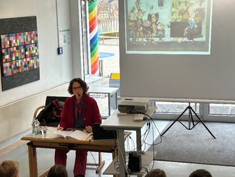 Am Dienstag, 04.02.25 besuchte die Autorin und Illustratorin Sophie Schmid unsere Schule. Die Kinder lauschten in der unteren Aula gebannt dem Buchvortrag der Autorin. Sie las unter anderem aus ihren Büchern „Das große Kuscheln“ und „Mir ist so langweilig“ vor.