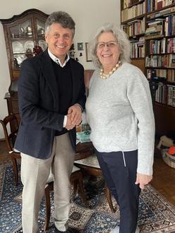 Im Namen der Gemeinde Aystetten überbrachte Herr Bürgermeister Peter Wendel seine herzlichsten Glückwünsche an Frau Gabriele Schmoeger anlässlich ihres 80. Geburtstags. Geboren in Wien, wanderte sie im Alter von vier Jahren gemeinsam mit ihren Eltern nach Johannesburg aus. Dort lernte sie ihren späteren Ehemann kennen, mit dem sie drei Kinder hat. Vor 55 Jahren zog das Ehepaar nach Deutschland und ließ sich in Aystetten nieder, wo Frau Schmoeger seither lebt.