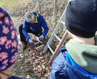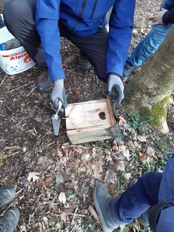 Gerade noch rechtzeitig, bevor die Vogelbrutzeit beginnt, wurden im Schulwald im Rahmen der Schul- Arbeitsgemeinschaft die Nistkästen gereinigt, mit Hilfe von Herrn Behringer vom LBV, der uns seit Jahren ehrenamtlich unterstützt.