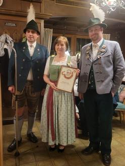 Zum Abschluss gab es noch eine besondere Ehrung für Lisbeth Eicher. Da sie beim Vereinsabend nicht anwesend sein konnte, wurde ihr nun nachträglich aus der Hand von Gebietsvertreter Alois Lankes das Goldenes Gauehrenzeichen für ihre langjährigen Verdienste im Sinne des Vereins überreicht.