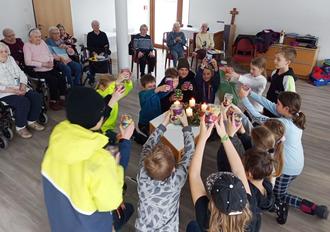 Besuch der Grundschule Inzell im Chiemgaustift; viel Freude bei den Bewohnern