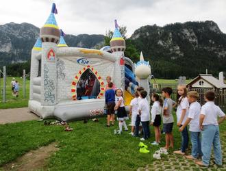 Groß war der Andrang bei der Drachenhüpfburg und man musste schon ein wenig warten, denn es konnten nicht alle Schüler auf einmal in die Burg hinein.